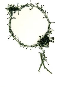 ‘The found objects I use are metaphors for recovered memory. I see these materials as artefacts which have a powerful relationship with the environment I have taken them from. Away from the wearer I would like my pieces to take on the character of still lives through the contrasts I seek to evoke in my assemblages. I find the manner of designing through making both intellectually and emotionally productive – I thoroughly enjoy the labour of hand tool processes.’