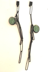 Fibrous Chain Earrings. Emerald with silver.