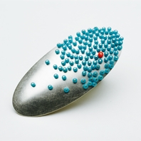 Her childhood was spent between Africa and the UK. Since graduating from the Royal College of Art in London, she has lived in Moscow, Washington DC, New Delhi and Bangkok. These places have all provided rich inspiration for Claire's work. She has translated the textures and colours collected on her travels into designs embellished with bright enamel, colourful glass beads and precious gem stones.