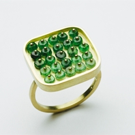 18ct yellow gold ring studded with a grid of Tsavorite beads.