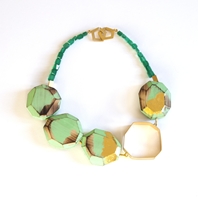 Eve Balashova creates striking statement jewellery using a combination of 3d printing and traditional hand skills. Her work is designed with ease of wear in mind as all pieces are very light and durable. Eve’s approach to making is a celebration of colour – she dyes each piece carefully by hand to create smooth, seamless transitions. These subtle hues are complemented by handcrafted precious elements, which she creates using traditional metalworking skills – piercing, scoring and folding, soldering.