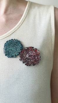 In Imogen Hales' practice, making jewellery always begins with drawing; these drawings are instinctive and gestural responses to particular places and moments in time. Imogen's graduate collection ‘Unspool’ transposes the energetic immediacy of her work on paper into jewellery, through the marriage of wirework and enamel.