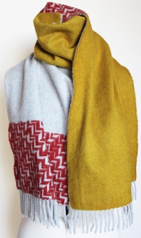 JKD Angora/wool 'colour block' yellow blocks with red herringbone on silver (knotted)