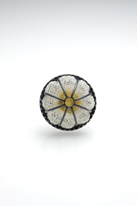Oxidised silver, elastic thread and gold leaf