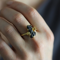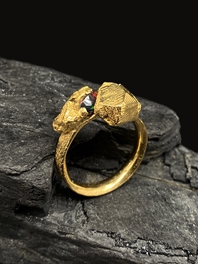 Inspired by treasure hunting and scavenging, manifested in London by going on regular mudlarking trips. Jelka creates one-of-a-kind, handmade sculptural jewellery pieces embellished with gemstones that are set as if they were randomly found like that. In between the cracks, askew, embedded in the metal, and some are almost hidden.