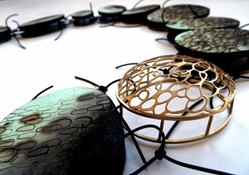 The technique of intricate saw piercing enables me to create nets and lightweight structures. I aim to shadow the forms of the nets and pots, and loosely interpret these shapes in my own way. The technique of pyrography plays an important role in my pieces allowing me to creating often detailed patterns combines with charred edges and loose paint strokes, mirroring the intricately knotted nets of the trade combined with wind beaten driftwood. My work aims to portray the rustic look of items found near harbors and tide lines.