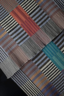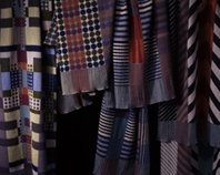 Nuno scarves are woven on traditional looms for making obi sashes. Working together with obi weavers in Kiryu, a weaving town two hours north of Tokyo that developed from the Edo Period, we use the tsutsu-oritechnique typically used for formal kimonos and create scarf and throw designs more suited to contemporary clothes out of silk and cotton. Formal kimono sashes are usually 68cm wide; our Nuno scarves are finished to 68cm and 34cm widths.