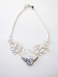 porcelain, white precious metal, freshwater pearls and garnet neckpiece