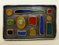 I combine painting, reworked icons and marks, fine silver, 22ct gold and glass, through fire, to create modern relics.The processes and skills for producing enamel work are exacting, requiring technical expertise in design and construction of a piece, and also an understanding of chemistry and the exactitude of firing of enamel. In essence, enamelling is glass bonded to metal by the action of fire. Firing transforms the enamel and gives the whole process a feeling of alchemy. I use traditional techniques of enamelling in a contemporary context, and am fascinated by blurring the boundaries between materials, styles, times and thinking, values and perceptions.