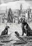 Living on the Regents Canal and working by the River Thames has impacted on her imagination. The etching series Time and the River depicts familiar London landmarks mixed with the ghosts of the Lost London.