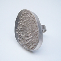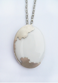 Intriguing items of jewellery, which explore the beauty of contrast between solid objects and fragile elements. Working in both precious and non-precious materials, the work is inspired by familiar patterns, colours and shapes drawn from everyday surroundings.