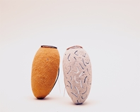 2 Brooches. Silver, red gold, sandstone, silver, champagne Diamonds