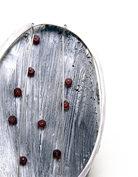Brooch. aluminium, freshwater pearl, garnets, silver