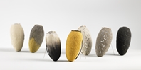 3 Brooches. silver, red gold, sandstone, smoky quartz,