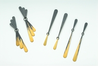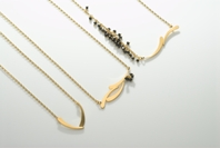 Her designs radiate a contemporary elegance as she combines precious metals, gemstones and the ancient technique of Keum-Boo to create compositions of colour and texture with light and movement always at the heart. Stark contrasts or subtle transformations revel themselves with the bodies turns as satin silvers are set against sparkling stones whilst gold gleams out from soft metal greys.