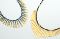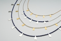 Finding inspiration in repetitive pattern, shape and movement, Anna crafts each piece from countless delicate shapes which together from flowing, articulated pieces that sit beautifully on the body and are enticing to the touch.