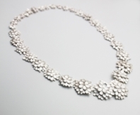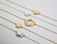 The Dahlia Collection uses an unusual mixture of white finished silver and gold to create a subtle and elegant colour statement. Formed by fusing a multitude of miniature petals, Dahlia speaks of the abundance and fullness found in organic structures. Through its handcrafted creation each and every piece becomes beautifully unique.