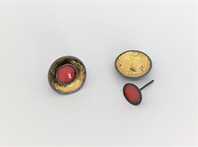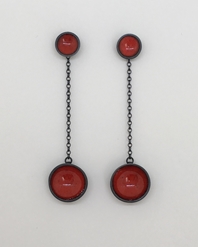 Oxidised white metal, red enamelled concave domed discs. 70mm Long.