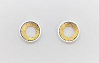 White metal concave domed discs with 24ct gold foil fused onto black enamelled edge. 15mm Diameter.