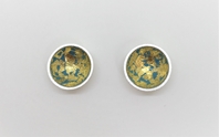 White metal, blue enamelled concave domed discs with 24ct gold foil fused onto the enamel. 11mm Diameter.