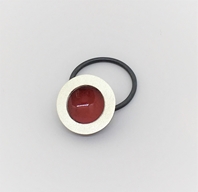 Oxidised white metal, red enamelled concave domed disc. The ring is kinetic. 18mm Diameter. Size P 1/2.