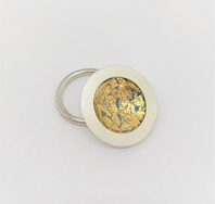 Oxidised white metal, black enamelled concave (press formed) with 24ct gold foil fused onto the enamel.