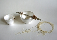My silversmithing work applies layers of wet process and powdered enamel onto raised contemporary copper and silver vessels, echoing an essence of traditional Asian ceramics. Bamboo has been used within the designs of several pieces; chosen primarily because of its material qualities and historical importance in Chinese design. Inspired by the multiple tools and vessel forms used by my parents, I aim to recreate these memories into evocative physical manifestations.