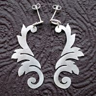 Inspirations form decorative motifs and colours from wall coverings and interior fabrics, pets, and simple iconic imagery from around the house inform elements of her designs. Techniques used are intricate hand-piercing, surface texturing and traditional jewellery making skills, combining silver and gold with silk, felt and semi-precious stones.