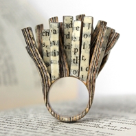 Every jewel is impossible to replicate and, carrying a serial number. Its beauty extends within the piece: text and images pass all the way through, only exposed at the surfaces, revealing a tantalizing glimpse of the writer’s story and the artist’s vision.