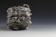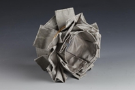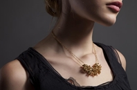 Her bespoke statement cuffs and neckpieces combine elements of traditional textile techniques such as double-pleating, folding and smocking with stainless steel mesh-cloth - an engineered techno fabric woven on a loom. These are recurrent themes, and create subtle changes in the surface of the cloth, the often extravagant layers creating an opulent feel and recalling a past time of exaggeration and decoration.