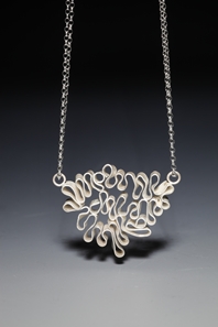 Alongside this collection is Karen's work in silver and 22ct gold vermeil. "Ruffle" is crafted from ribbons of silver, finely textured and hand-forged to form a densely layered, undulating surface. These pieces have elements of complexity and simplicity and due to the nature of the technique, all have subtle differences.
