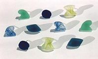 Kathie Murphy set up her studio in 1992 and since then has specialised in working with polyester resin, exploring the possibilities of this material. It is a versatile substance and allows her to mix an endless myriad of colours, varying from transparent to opaque. The process of making, working with colour and material informs her work. She has control of all aspects of the making from beginning to end. Although similar forms are used, her process means that all pieces are individually hand tinted and worked, making every piece unique.