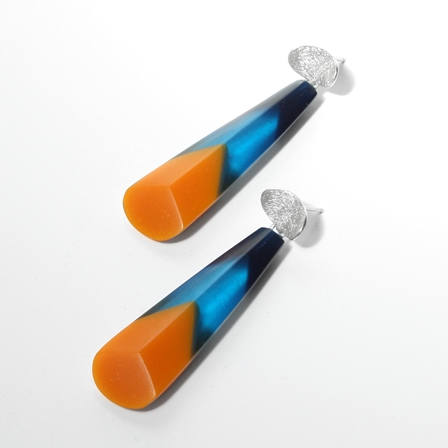 Michelle's jewellery explores the use of sterling silver, resin and polypropylene, and is inspired primarily by the working properties of the materials. She aims to explore the different ways that they can be combined, and worked, in order to achieve a balance between form, pattern and colour. Careful finishing of the various surfaces lends a refined, precious, quality to the materials.