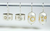 Hanging earrings in silver and 22ct gold or 18ct white gold.