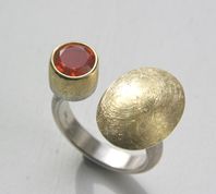Silver ring with round fireopal set in 22ct gold and 18ct gold oval.