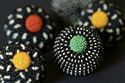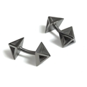 Geometric jewellery in silver, black rhodium and contrasting gold leaf.