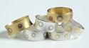 Bangles, pendants, neckpieces and rings in silver with 18ct gold and diamonds.